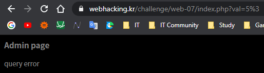 5개의 쿼리문 중 랜덤으로 선택되기 때문에 괄호가 하나만 있는 쿼리문이 선택될 때까지 몇 번 새로고침을 하다 보면 이렇게 문제가 풀리는 것을 볼 수 있습니다!